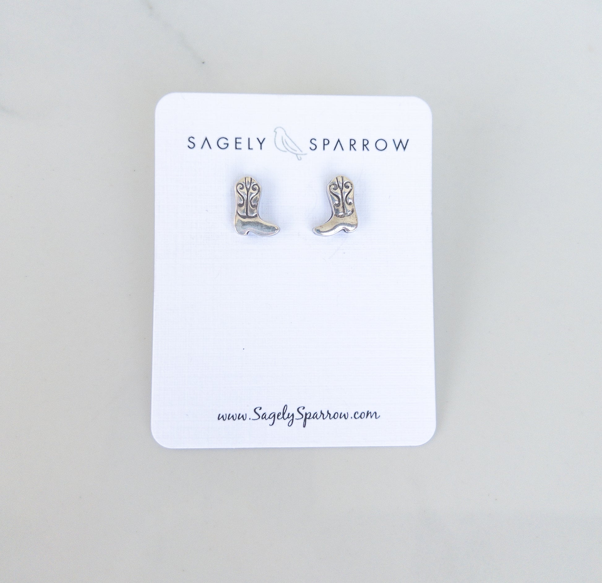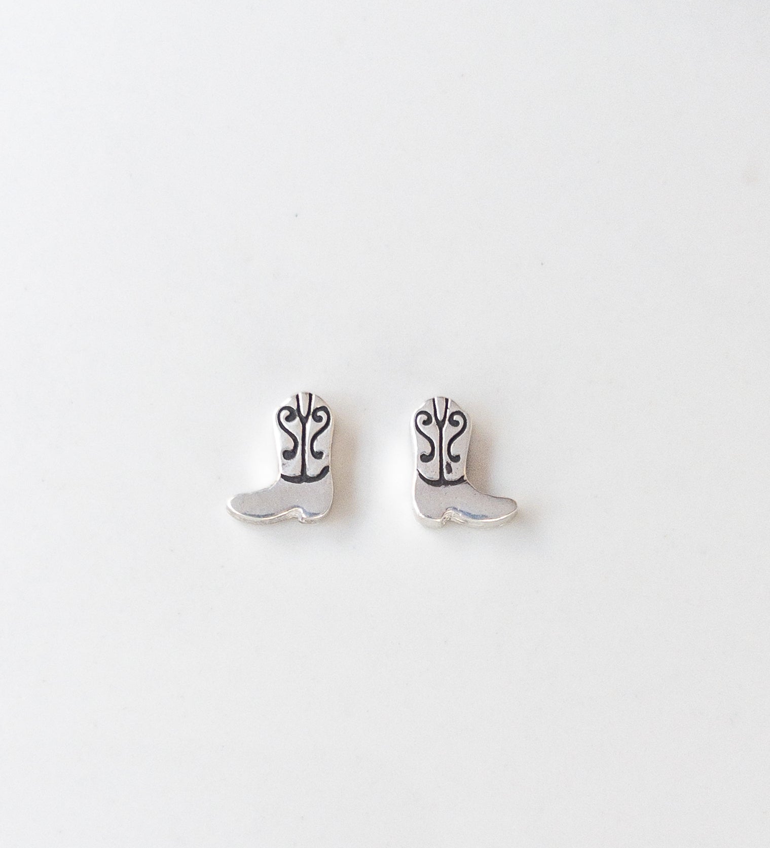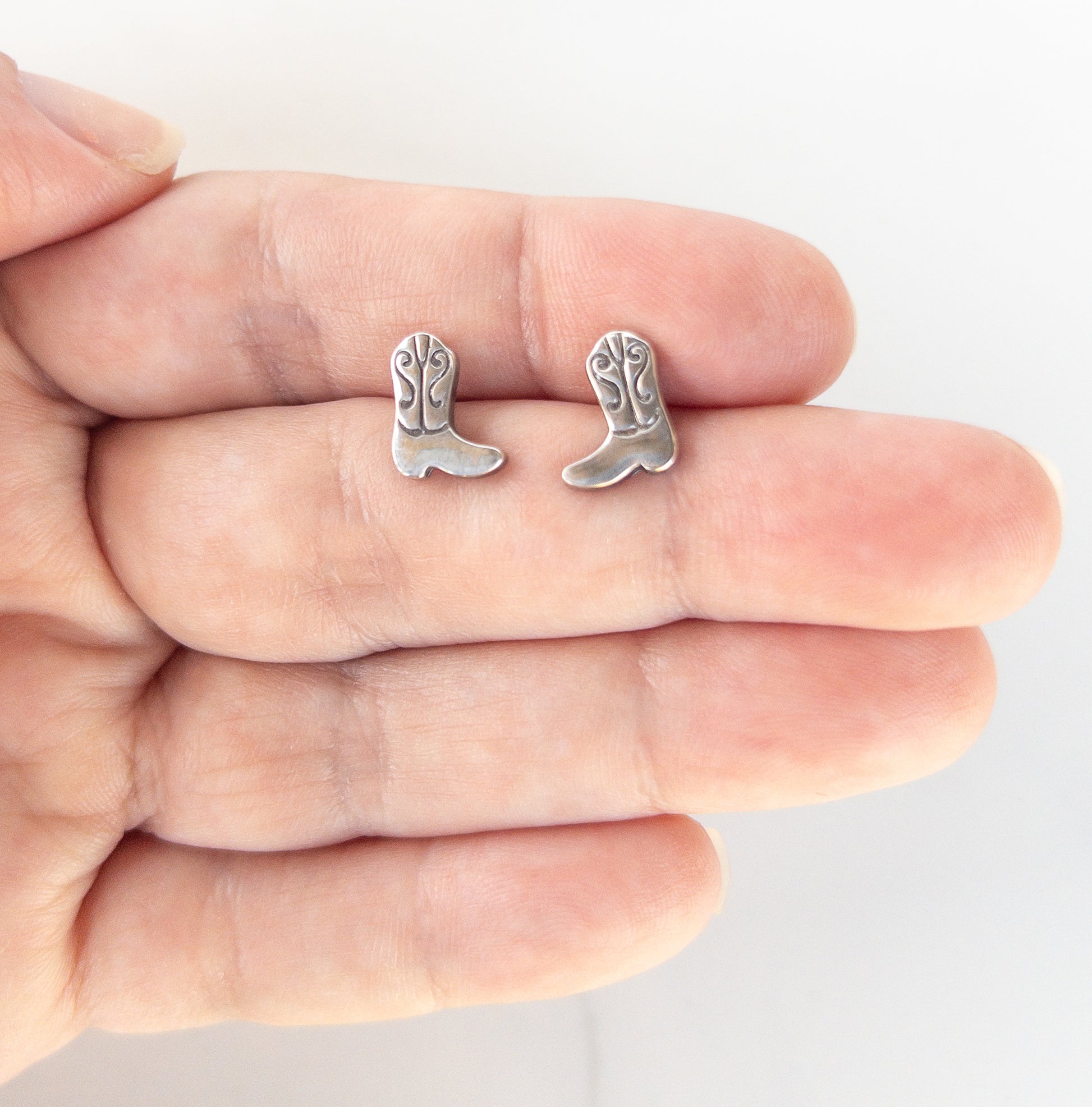 Sterling Silver Cowboy Boot Stud Earrings – Rodeo-Inspired Western Jewelry