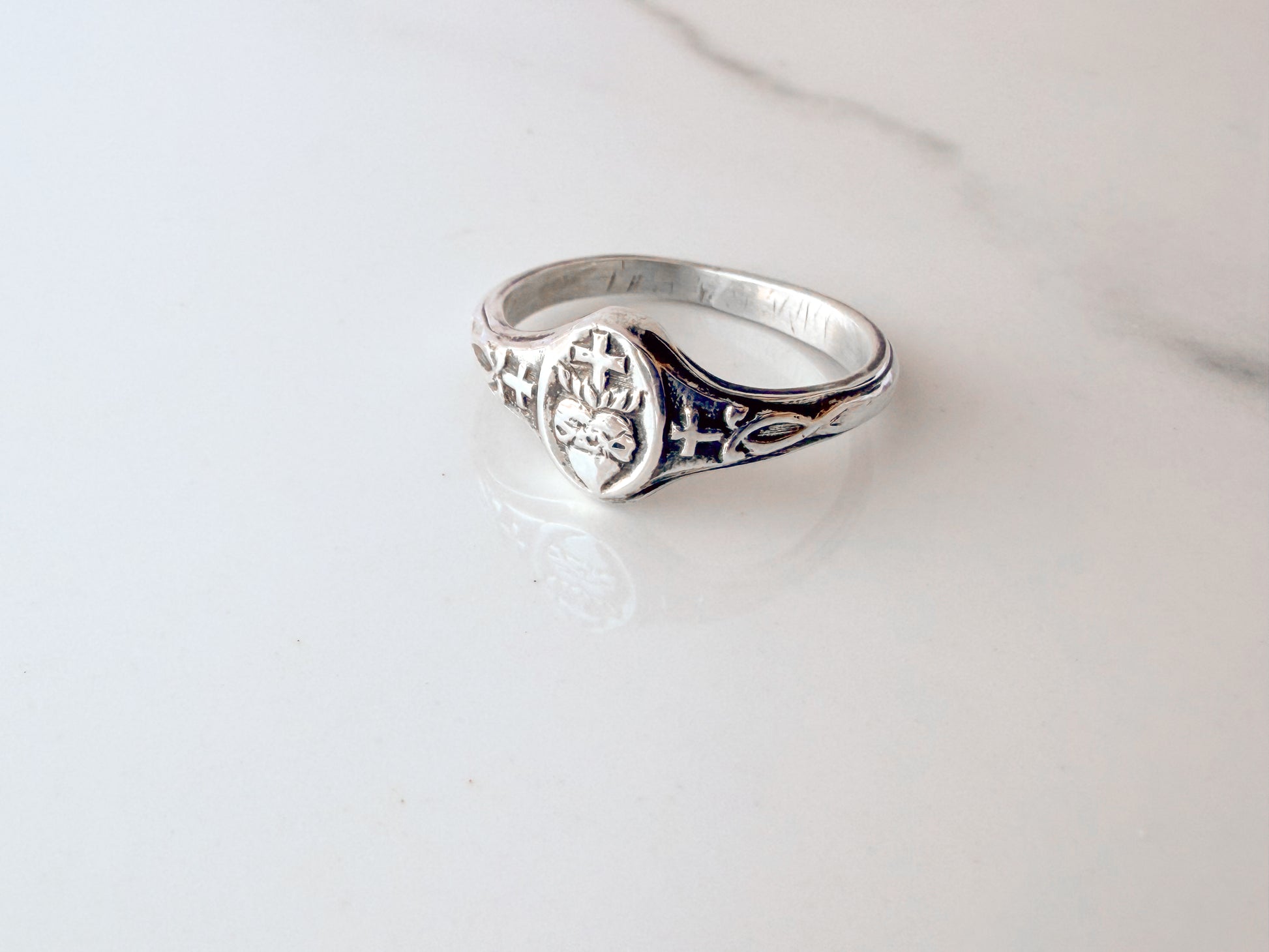 Vinatge-Style Sterling Sacred Heart Ring – Ready to Ship